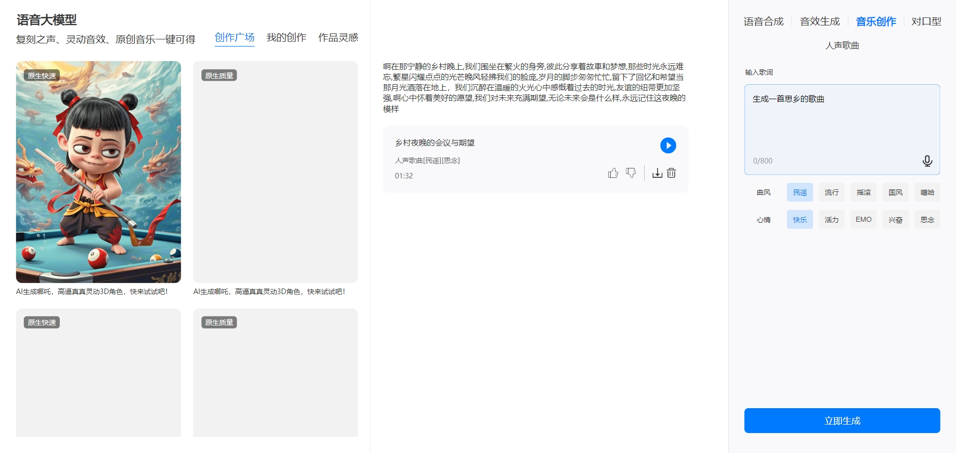 语音大模型,复刻你的专属音色,生成多元音效,还能谱写动人旋律,一站式满足你对声音的所有想象。