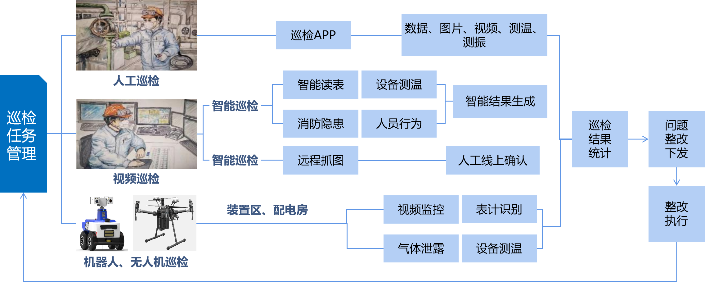 智能巡检需兼顾安全、质量和效率,以“高清视频+机器人+无人机”开展设备外观和红外巡视,